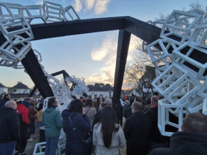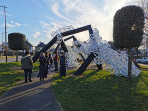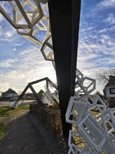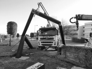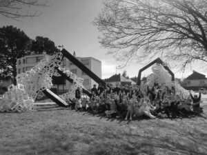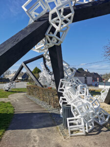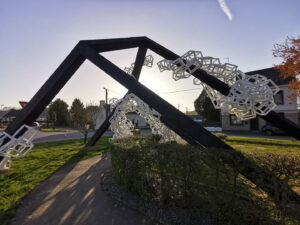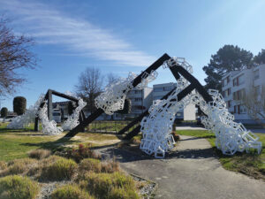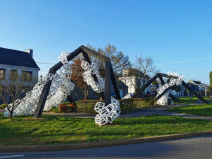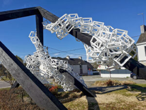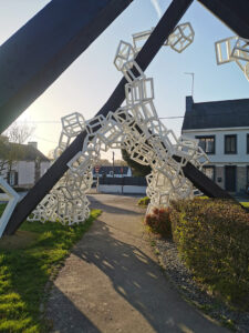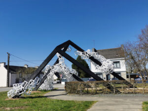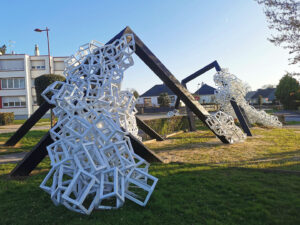 Fruit d’une collaboration entre l’artiste Simon AUGADE, les élèves (CM1- CM2 de l’école Notre-Dame du Plasker, Les élèves de 5ème et 4ème du collège Jean-Pierre Calloc’h, Les élèves de 2nd Jardin Paysage Forêt et Services Aux Personnes et Aux Territoires du lycée Anne de Bretagne) et les résidents de l’EHPAD, ce projet fédérateur, engageant la rencontre entre générations et institutions par un travail collectif, interroge par les formes ouvertes de la sculpture, ces murs qui protègent, mais cloisonnent.